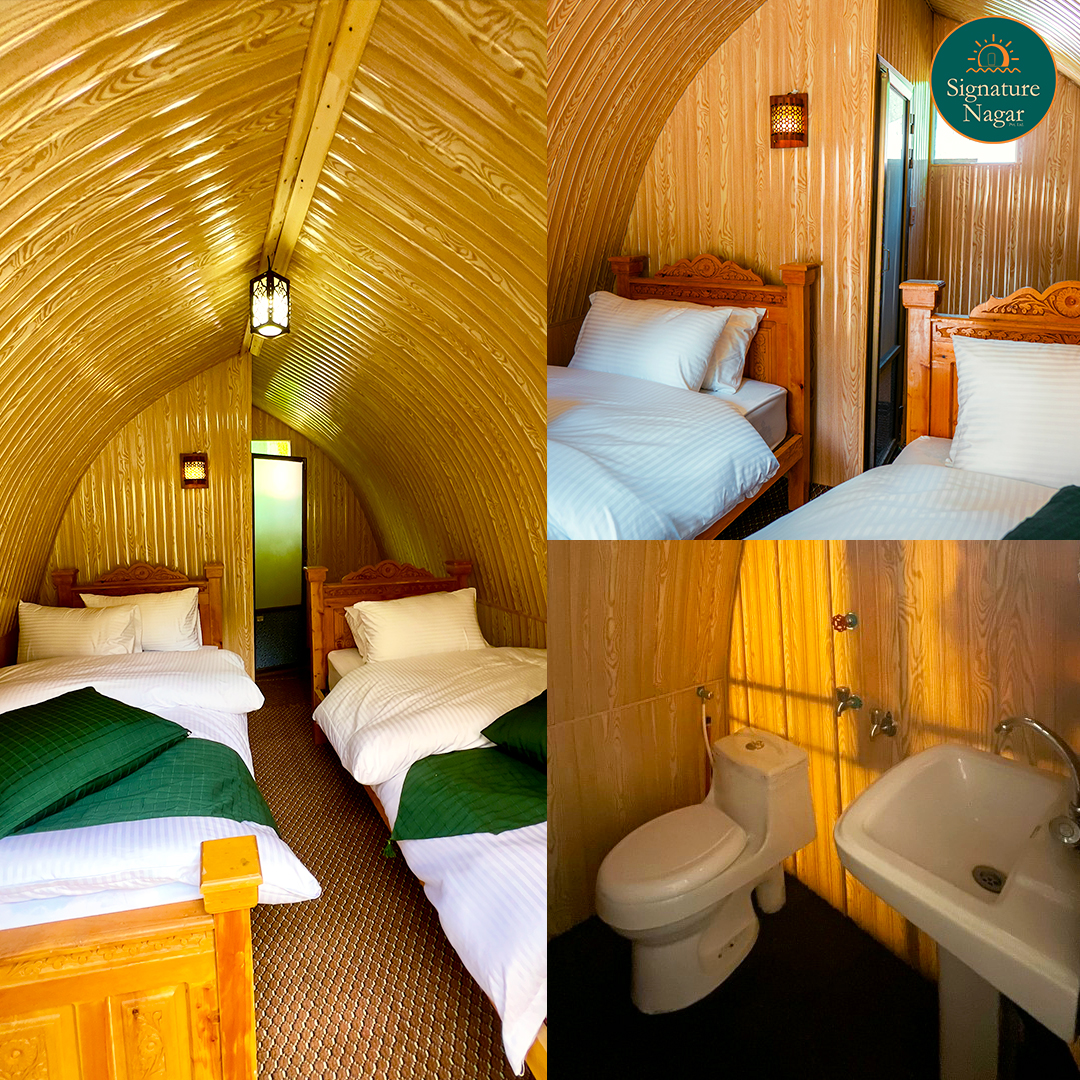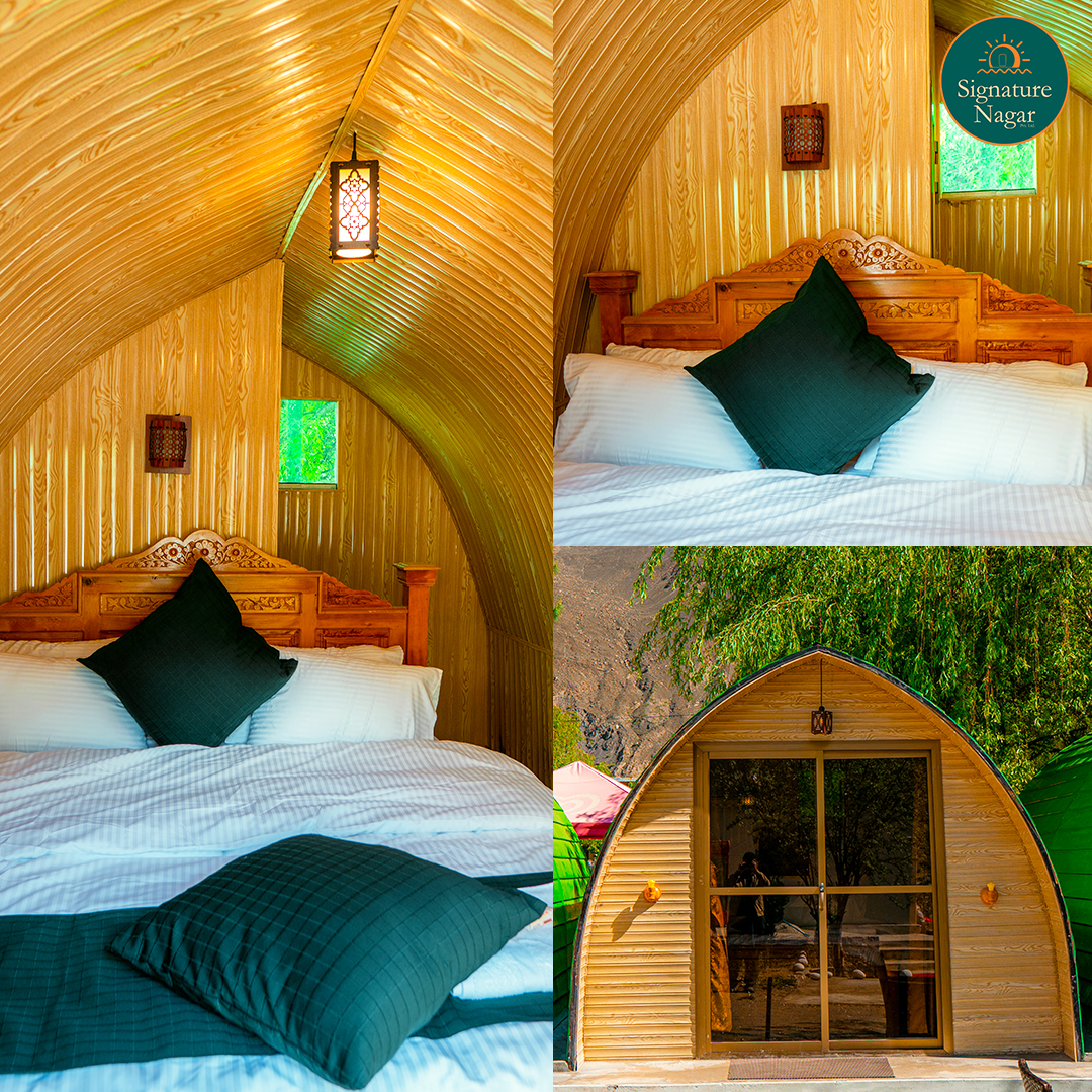 Signature Nagar is the first step towards the promotion of Nagar Valley in a traditional as well as modern way. This resort offers accommodation in a style. You can choose from standard and executive rooms to stay as per your choice OR experience the joy of living in a camping pod with a clearest view of Rakaposhi Mountain when you wake up in the morning. There is a Selfie Point and a Nagar Bridge for all selfie enthusiasts and influencers. The resort also provides traditional foods of Nagar, to promote Culinary Tourism of GB.